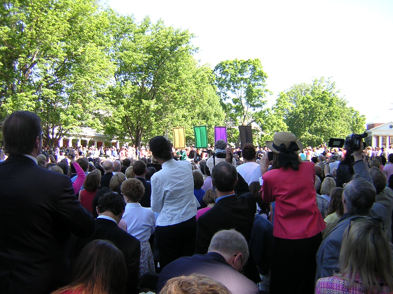 | 卒業式には実に多くの方が出席され、Charlottesvilleは1年に1度といわれるほどの賑わいでした。報道によると3万人もの人がセレモニーに出席したそうです。最高気温も30度近くまで上がるなど夏を思わせる1日でした。 |