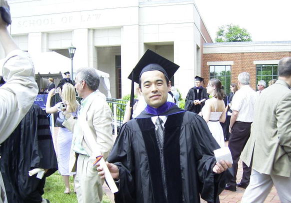 | May 22, 2005 10ヶ月にわたって研究を重ねてきたUVAでの日々も、今日で一区切りです。お陰様で、小職は、無事にUVAから法学修士号を取得することができました。研究の指導に当たってくれたCharles J. Goetz博士には感謝しております。 |