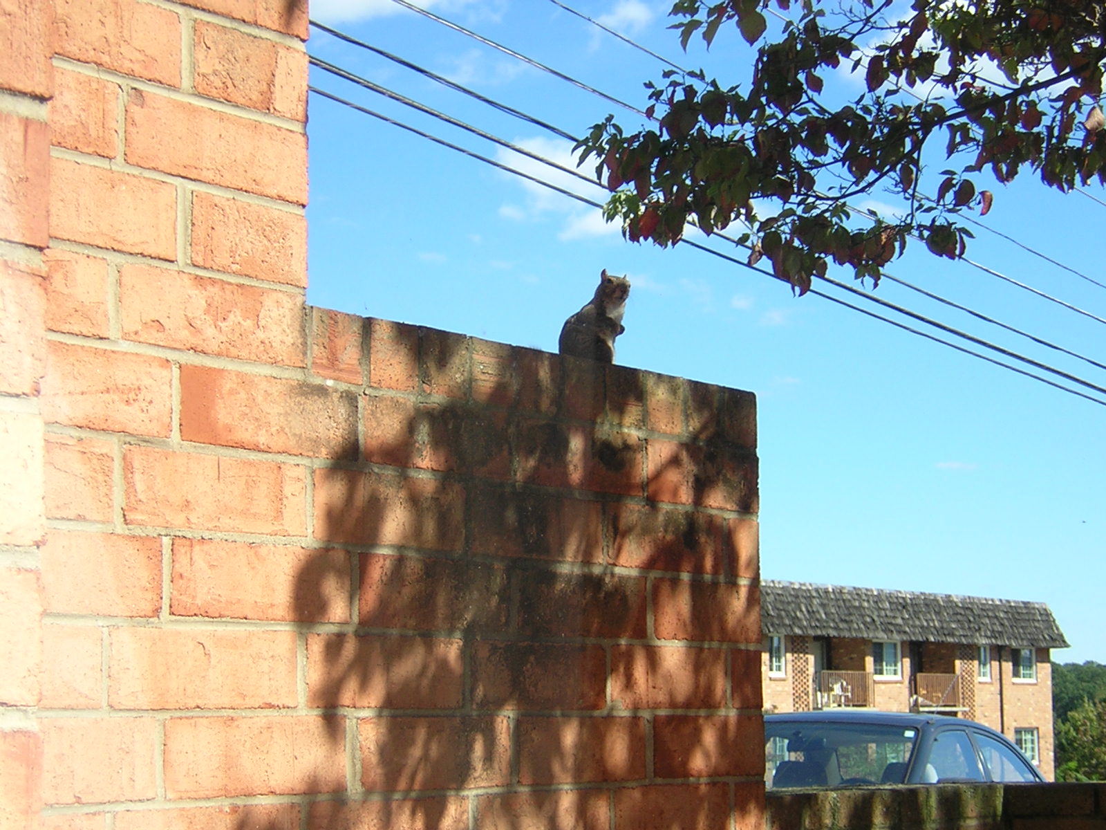 | 下記1枚目の写真は、Rotundaの近くにあるMinor Hallで、やはり歴史的な建造物だそうですが、現在でも使用されています。下2枚目の写真は、小職のアパートから見た景色です。リスが毎日のように走り回っています。冬眠の準備を進めているようです。冬に向けて、小職も、より、一層、研究及びコースワークともに、頑張りたいと思います。 |